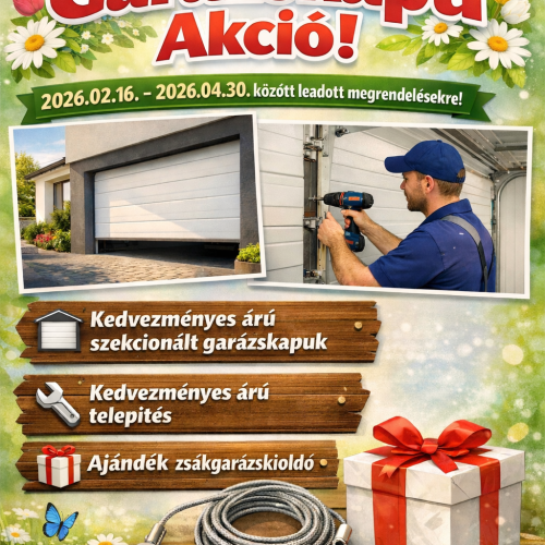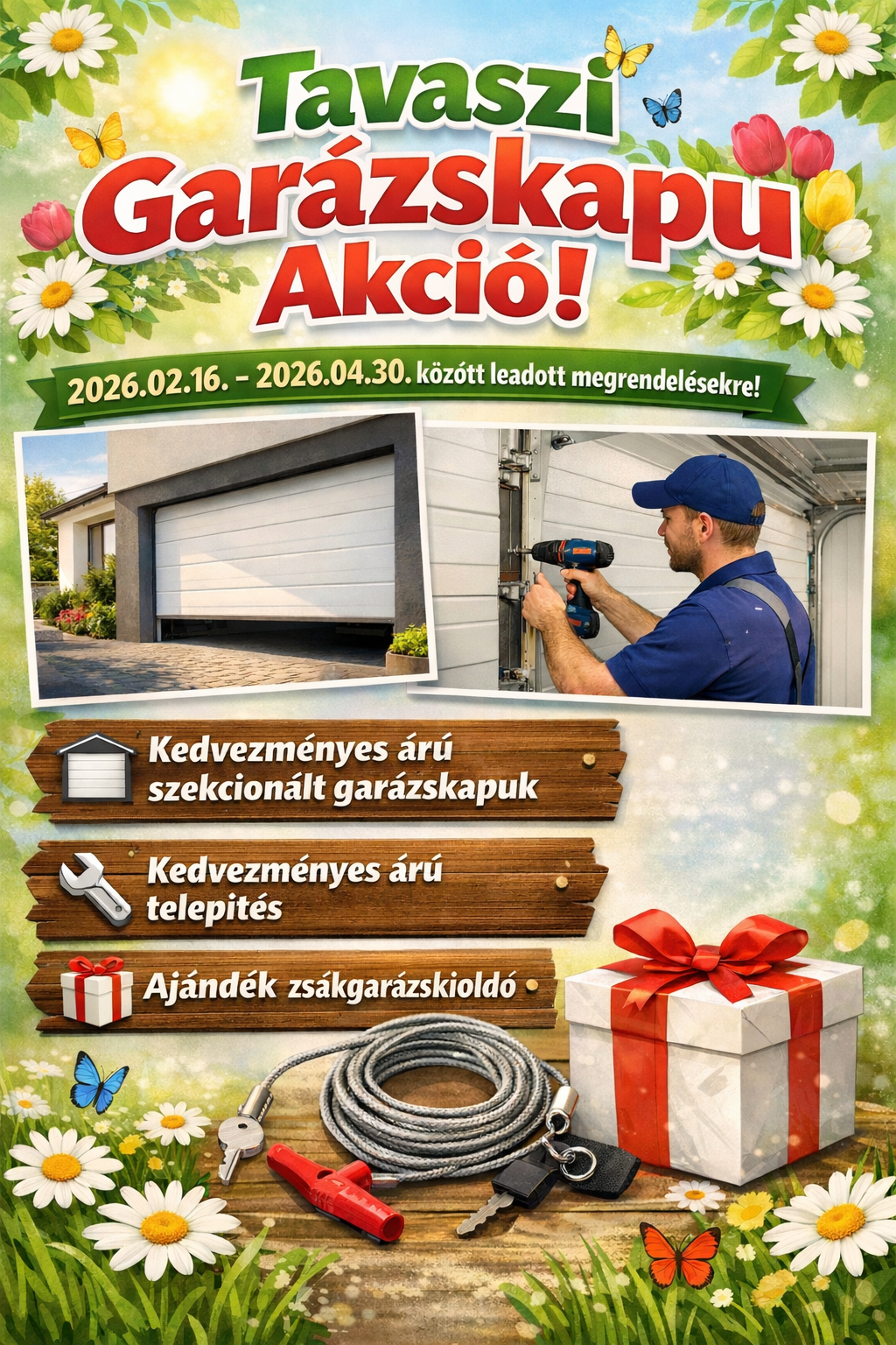 Cégünknél tavaszi garázskapu akciót hirdetünk! 2026.02.16.- 2026.04.30. között leadott megrendelésekre!